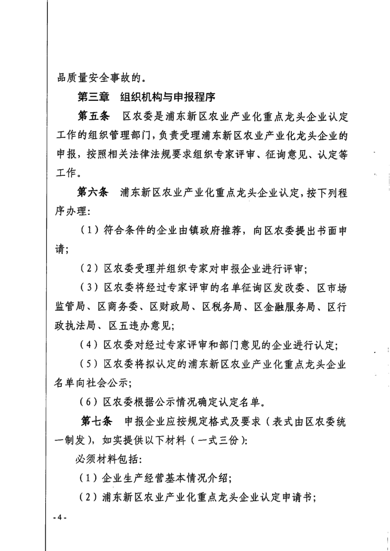 (4) 区农委将拟认定的浦东新区农业产业化重点龙头企业名单向社会公示;