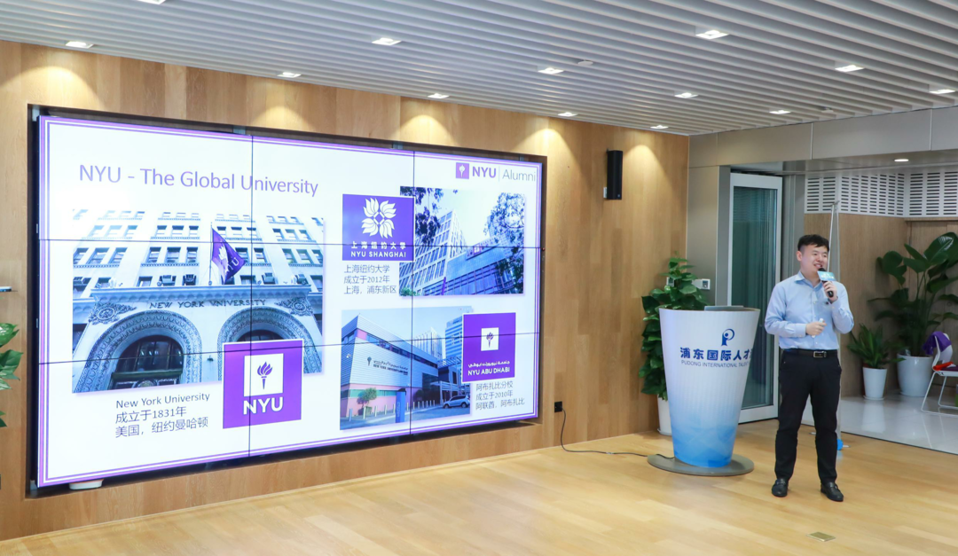 纽约大学上海校友会首任会长符啸愚介绍了上海校友会的整体组织架构、过往精彩活动以及纽约大学与浦东的历史渊源,并表示将联合浦东国际人才港更好地为校友们提供服务。