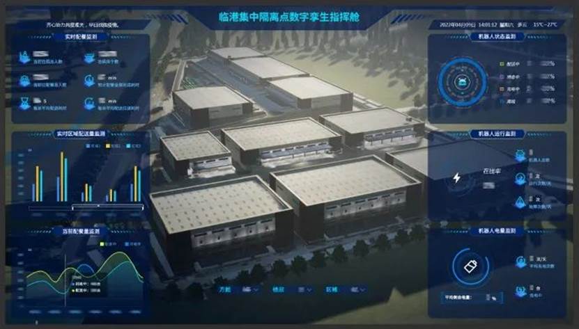 在市经信委的组织协调下,联合多家人工智能企业,协调多方资源,吹响了数字化管理和服务机器人的“集结号”,为打赢这场“疫情防控阻击战”贡献科技智慧和力量。在临港方舱,通过五个昼夜的紧急部署,投入并应用了近300台各类机器人“小白”上岗,覆盖室内外物流、配送、消杀等刚需场景。叠境数字引入激光点云雷达快速建模,仅用数小时便完成方舱室内空间数据的快速扫描,快速首次实现了方舱医院场景下的多种类机器人的规模化、体系化部署和数字孪生系统虚实融合的实战应用,并将相关经验复制推广到国家会展中心方舱等地,在防疫一线取得了实效,科技赋能疫情攻坚战。