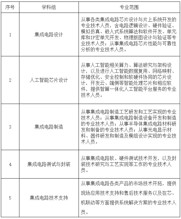 上海市工程系列集成电路专业中级职称评审委员会(以下简称中评委),下设5个专业学科组,具体专业范围如下:
