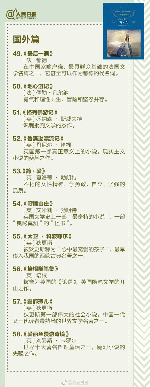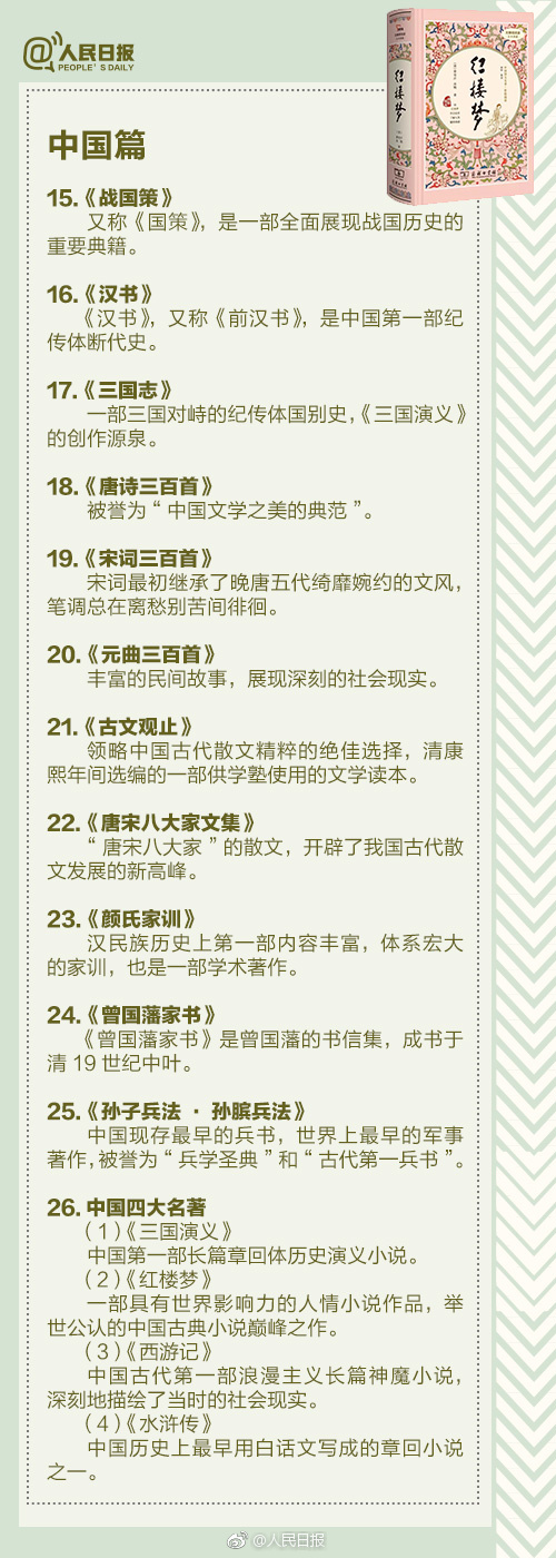 下面奉上人民日报推荐的100本经典好书