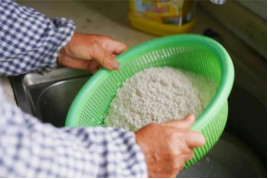 2.用清水将糯米淘洗干净,沥干水分,再加入适量的老抽、生抽、糖、盐,搅拌均匀备用。