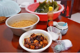 材料:粽叶、糯米、五花肉、老抽、生抽、白砂糖、食盐、胡椒粉