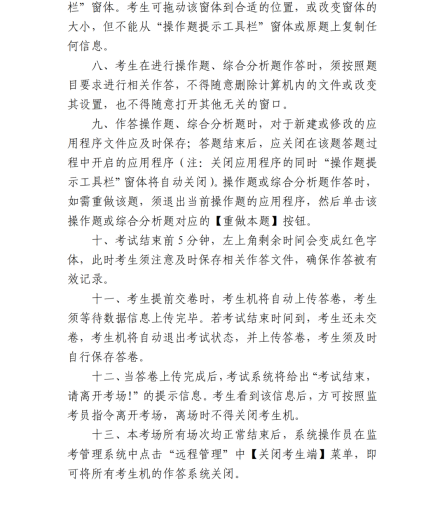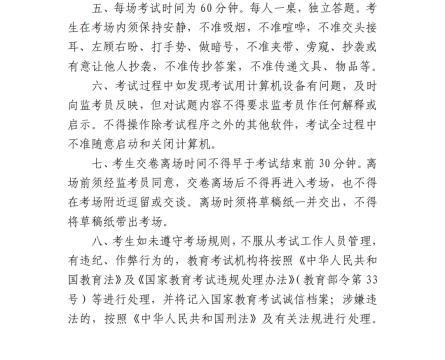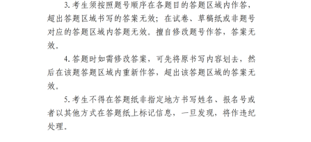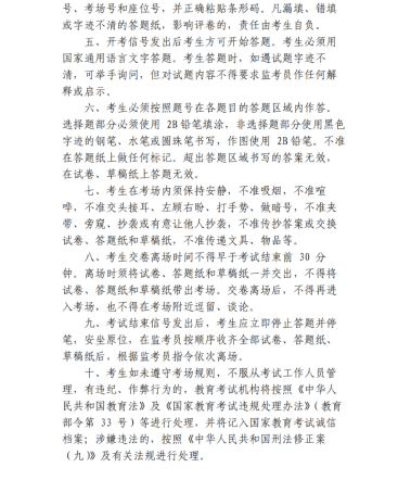 10.考试结束,考生应听从考点指挥,带好随身物品,有序快速离场,切勿滞留考点。