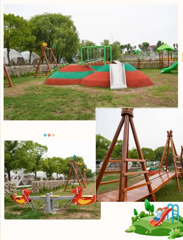 一片偌大的户外游乐场,和露营区紧邻。滑滑梯、独木桥、秋千、攀岩……从幼儿到儿童,游乐场适合各个年龄段小朋友,足以让孩子度过充实快乐的一天。大人在营地内喝茶聊天,小孩在外头疯玩,岂不美哉?