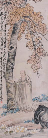 王一亭【1867-1938】:名震,号白龙山人,法名觉器。祖籍浙江吴兴(今湖州市),生于上海浦东周浦。民国时期海上著名书画家、实业家、慈善家、社会活动家与宗教界名士。早年得徐小仓、任伯年指点,后与吴昌硕亦师亦友,趋向阔笔写意,设色浓艳,笔墨酣畅,气势雄阔而不失写实本色。构图讲究,诗书画印,浑然一体。