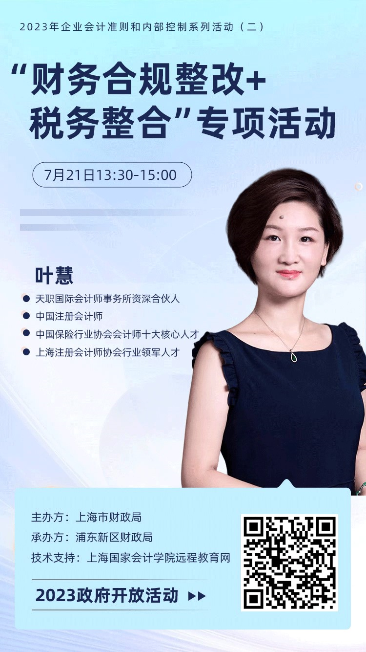 明天13:30-15:00,该系列第二场活动“财务合规整改+税务整合”专项活动将在线上直播,欢迎大家扫描下方海报上的二维码观看。
