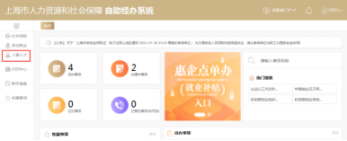 插入单位法人一证通,进入上海市人力资源和社会保障自助经办系统网站。
