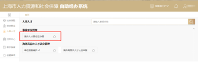 输入密码后进入页面,点击【人事人才】>【海外人才居住证办理】进入主界面。