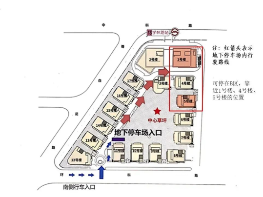 2、如您驾车出行,请从环科路南门进入至地下停车场,停至4、5号楼附近车位即可。