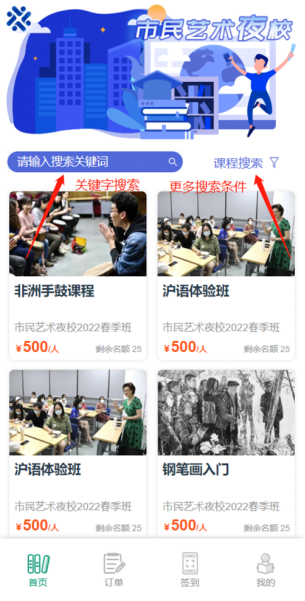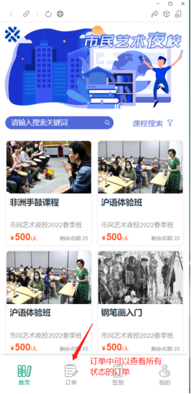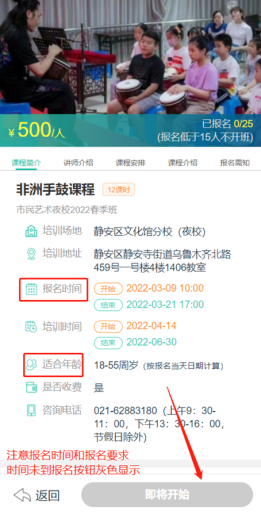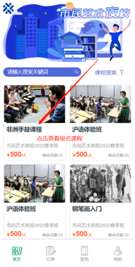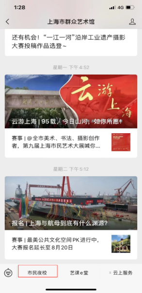 ② 关注“上海市群众艺术馆”,点击菜单栏中的“市民夜校”进行报名