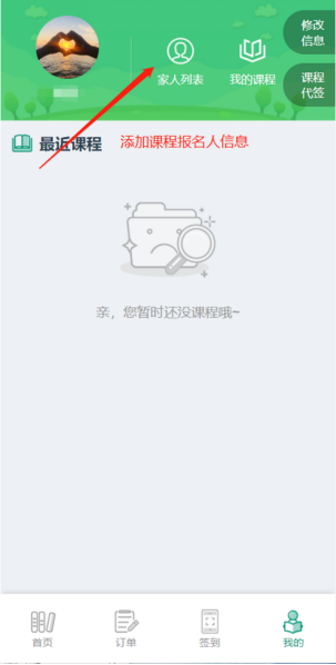 关注“上海市群众艺术馆”点击菜单栏“市民夜校”,点击我的→家人列表→添加家庭成员(本人信息)。
