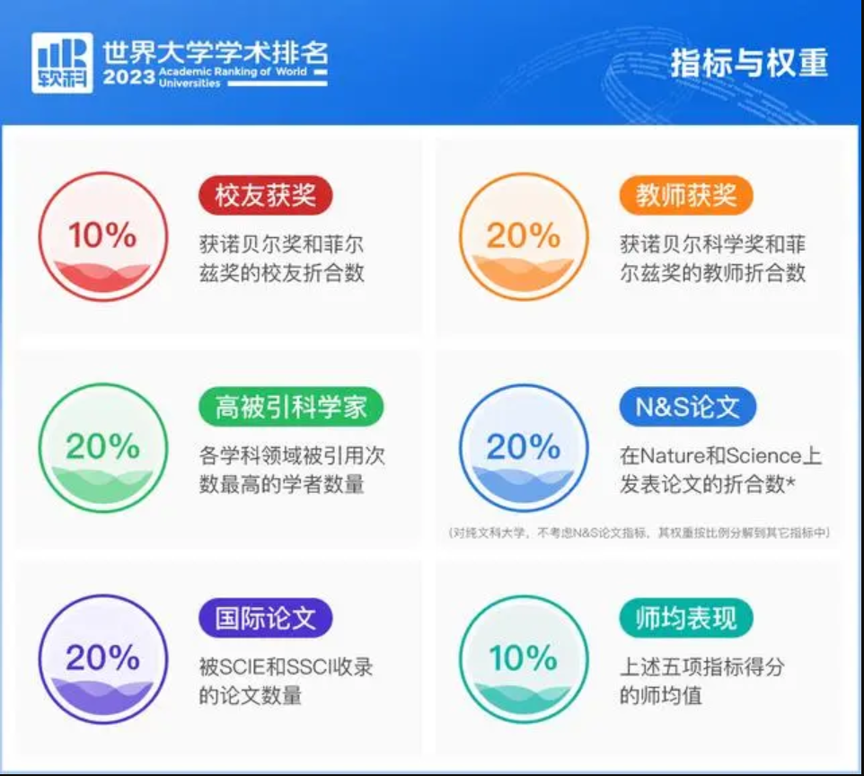 软科世界大学学术排名(简称ARWU)是世界范围内首个综合性的全球大学排名,2003年首次发布,今年发布的是第21版。ARWU以评价方法的客观、透明和稳定著称,全部采用国际可比的客观指标和第三方数据,包括获诺贝尔奖和菲尔兹奖的校友和教师数、高被引科学家数、在《自然》(Nature)和《科学》(Science)上发表的论文数、被科学引文索引(SCIE)和社会科学引文索引(SSCI)收录的论文数、师均学术表现等。