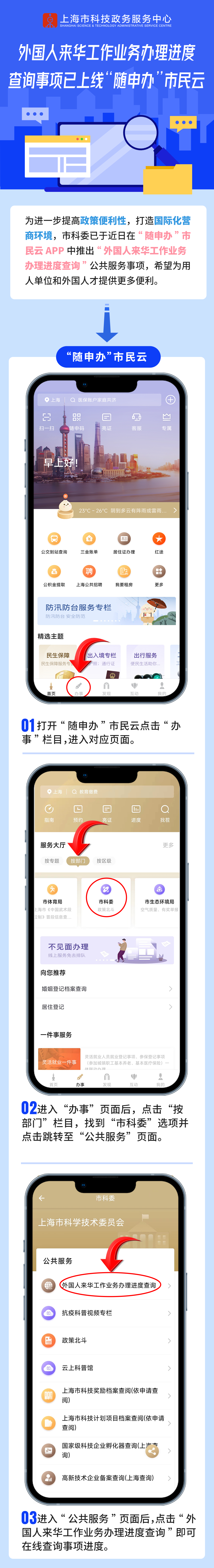 外国人来华工作业务办理进度查询事项已上线“随申办”市民云