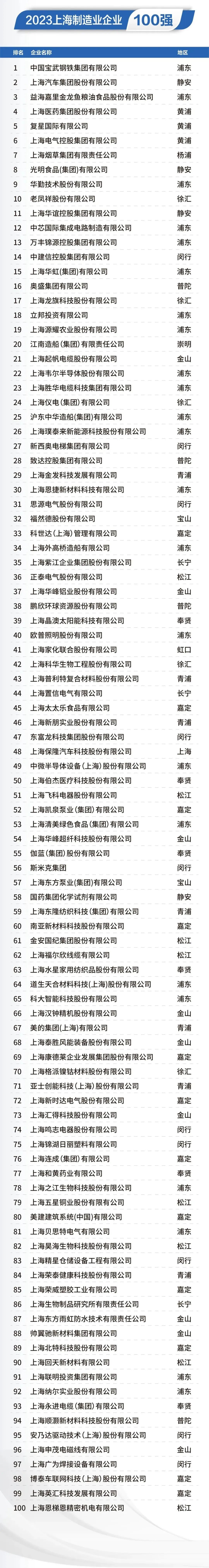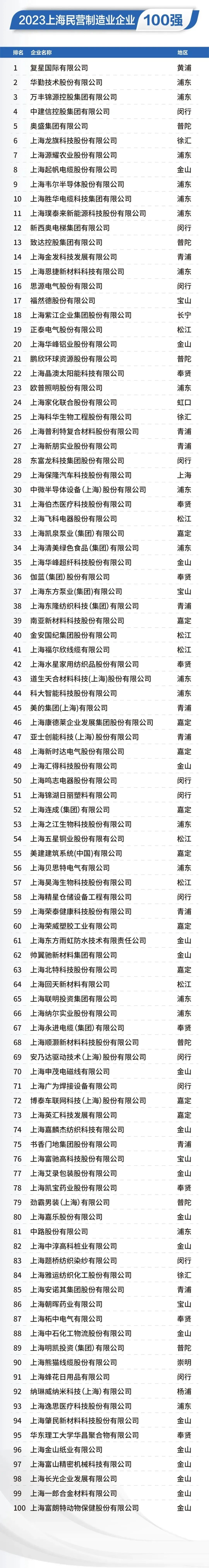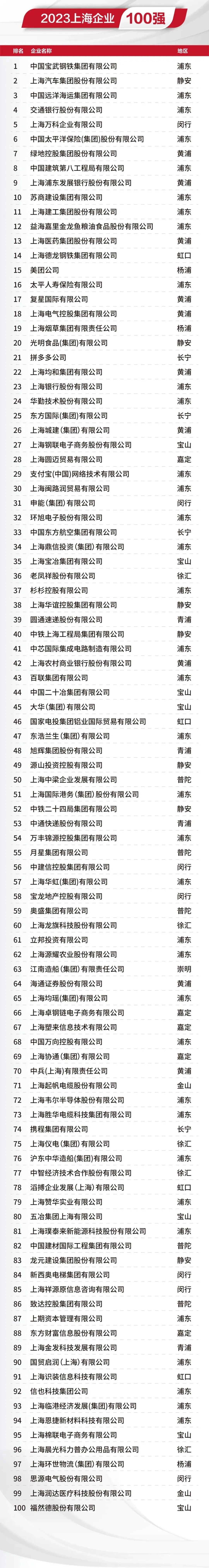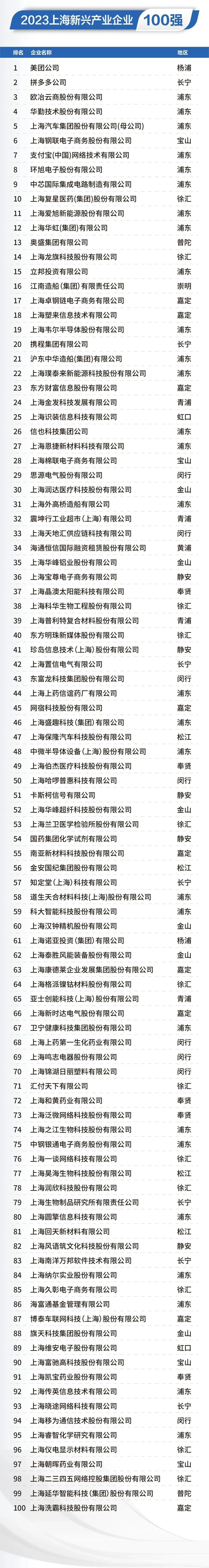 一同发布的还有2023上海制造业企业百强、2023上海民营企业百强、2023上海民营制造业企业百强、2023上海新兴产业企业百强等。其中,23家浦东制造业企业入选2023上海制造业企业百强,28家浦东新兴产业企业入选2023上海新兴产业企业百强,欧冶云商、华勤技术、上汽集团(母公司)、支付宝、环旭电子、中芯国际等6家企业名列2023上海新兴产业企业百强前十位。