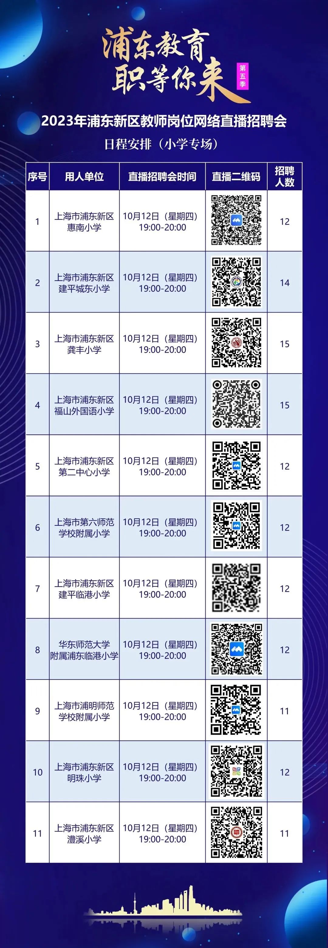 10月8日—10月13日,浦东新区教育局举办“浦东教育 职等你来(第五季)”公办学校教师岗位招聘会系列活动,正式启动2024年浦东新区公办学校第一批次教师招聘工作。
