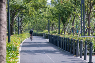 沿线景色优美,功能各异,滨水空间活力满满,工业遗存得到有机更新,绿色基底也得到有效恢复。人们沿途骑行不仅能感受摩登都市的繁华绚丽,还能体验沉浸自然的岁月静好。
