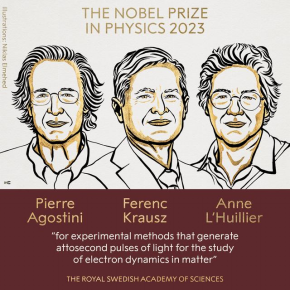 2023年诺贝尔物理学奖授予了美国俄亥俄州立大学教授皮埃尔·阿戈斯蒂尼(Pierre Agostini),匈牙利物理学家、德国慕尼黑大学马克斯普朗克量子光学研究所的费伦茨·克劳斯(Ferenc Krausz),以及法裔瑞典隆德大学教授安妮·吕利耶(Anne L'Huillier)。