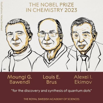 2023年诺贝尔化学奖授予了美国麻省理工学院教授蒙吉·G·巴文迪(Moungi G. Bawendi)、美国哥伦比亚大学教授路易斯·E·布鲁斯(Louis E. Brus)和美国纳米晶体科技公司科学家阿列克谢·伊基莫夫(Alexey I. Ekimov)。
