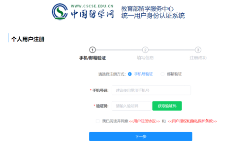登录教育部留学服务中心网上服务大厅