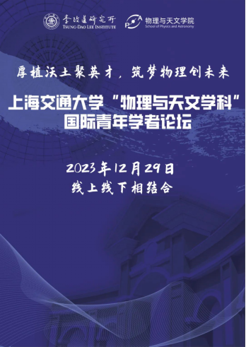上海交通大学“物理与天文学科”国际青年学者论坛是由上海交通大学物理与天文学院和李政道研究所联合举办,旨在通过学术报告、交流研讨等形式,为海内外青年英才搭建学术交流和成果展示的平台,聚焦学术前沿,探讨学术热点,共攀学术高峰,助力世界一流物理与天文学科建设。