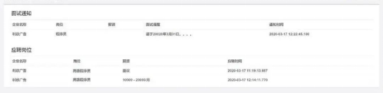 功能(免费):投递简历;线上交流;查询投递结果;短信接收面试通知。