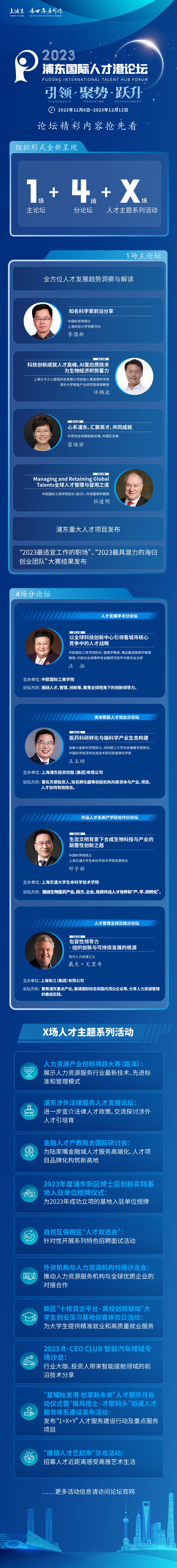 “2023浦东国际人才港论坛”以“引领·聚势·跃升”为主题,邀请著名专家学者、科学家、企业家、创新创业人才等,多维度探讨创新人才发展趋势,助力人才在浦东这个世界级舞台实现飞跃式提升、追逐梦想、成就事业。