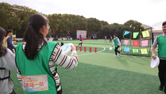 来自祝桥镇、国际旅游度假区、川沙新镇、合庆镇、曹路镇、浦发集团、浦东新区教育局、浦东新区税务局、东航物流、上海建工上海东站综合交通枢纽建设等十余家单位组成的14支比赛队伍参加了飞盘嘉年华活动,活动共分为九宫格、捕捉网、不倒翁等环节。祝桥镇团委副书记朱磊婷表示,希望通过活动平台,用青年人喜爱的方式,服务青年、凝聚青年。