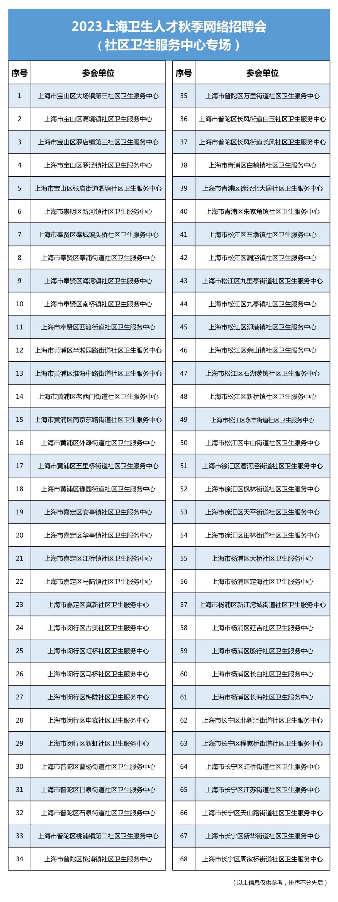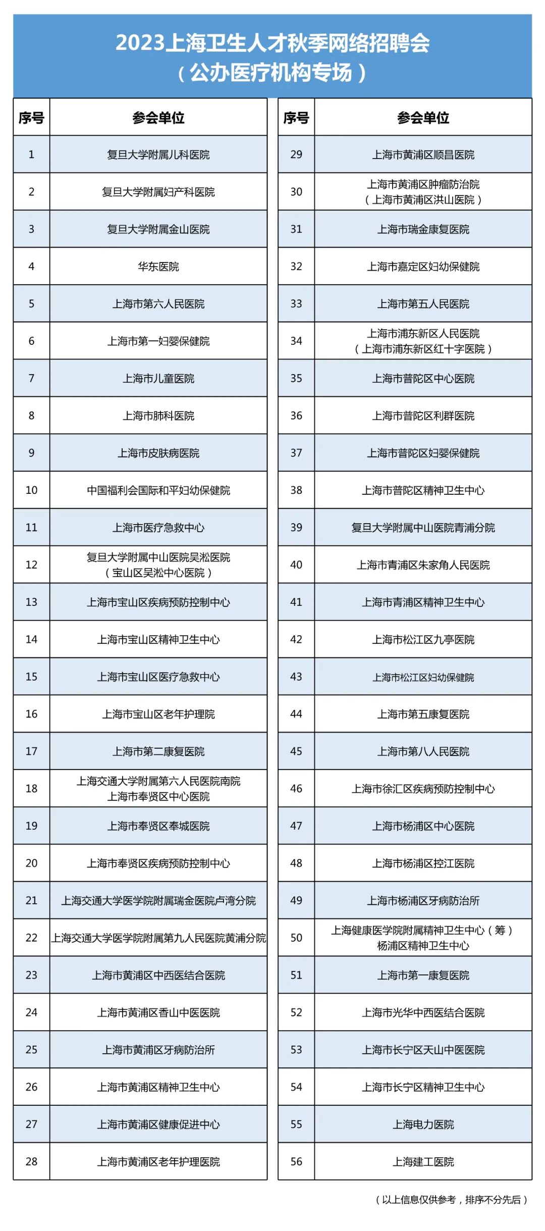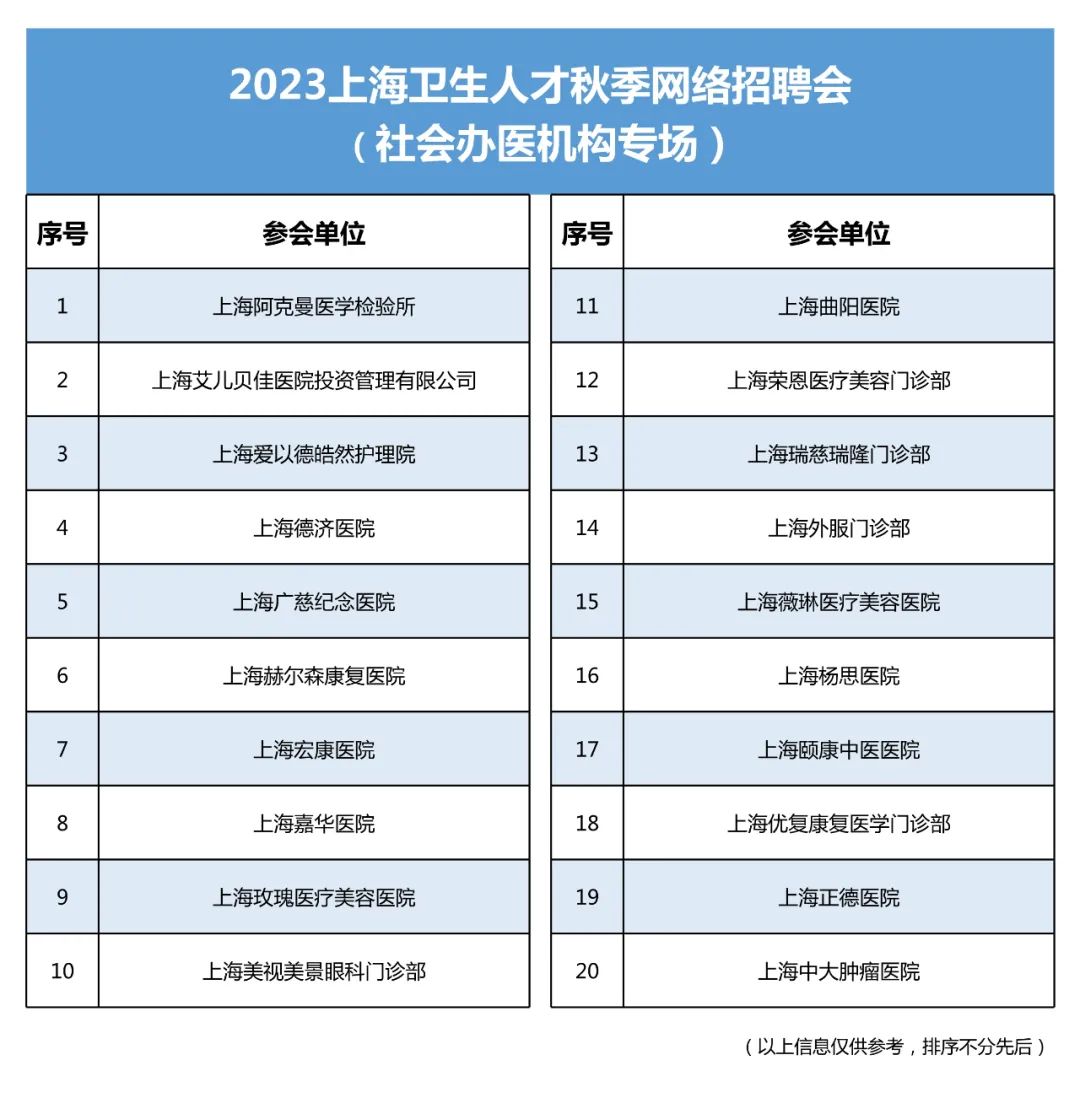 为贯彻落实党的二十大提出的实施就业优先战略的有关精神以及关于“稳就业”、“促就业”的相关政策要求,聚焦本市卫生健康事业高质量发展,进一步促进用人单位高效引才聚才,上海市卫生人才交流服务中心于2023年11月28日至12月8日期间举办“2023上海卫生人才秋季网络招聘会”。