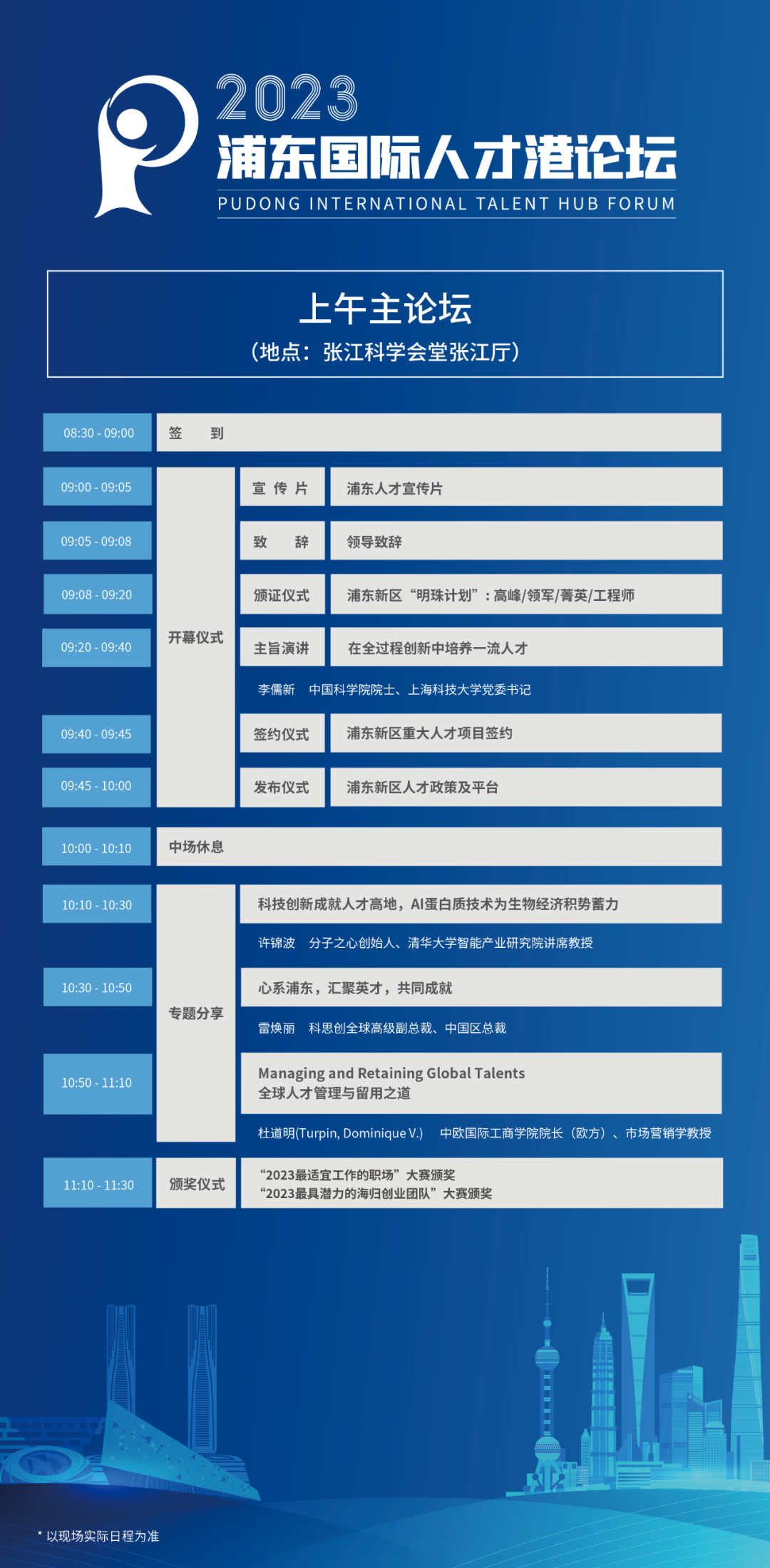 “2023浦东国际人才港论坛”以“引领·聚势·跃升”为主题,邀请著名专家学者、科学家、企业家、创新创业人才等,多维度探讨创新人才发展趋势,助力人才在浦东这个世界级舞台实现飞跃式提升、追逐梦想、成就事业。