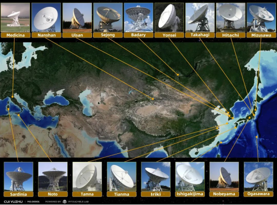 这项工作使用了包括东亚VLBI网(EAVN)、美国的甚长基线阵列(VLBA)、韩国KVN和日本VERA联合阵列(KaVA)以及东亚到意大利/俄罗斯联合的EATING观测网在内的多个国际观测网络的170个观测数据,全球超过20个射电望远镜为这项研究做出了贡献。