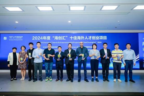 10月12日,在浦东新区国际人才港举行的海外人才浦东“引领区”创业汇(以下简称“海创汇”)颁奖仪式上,记者看到了更多像KINET这样代表 “新质生产力”和“未来产业”的年轻面孔。上海市科协国际合作部部长王新、浦东新区人才工作局副局长方冰峰共同揭晓了2024海创汇十佳海外人才创业项目,并为各优秀项目颁奖。