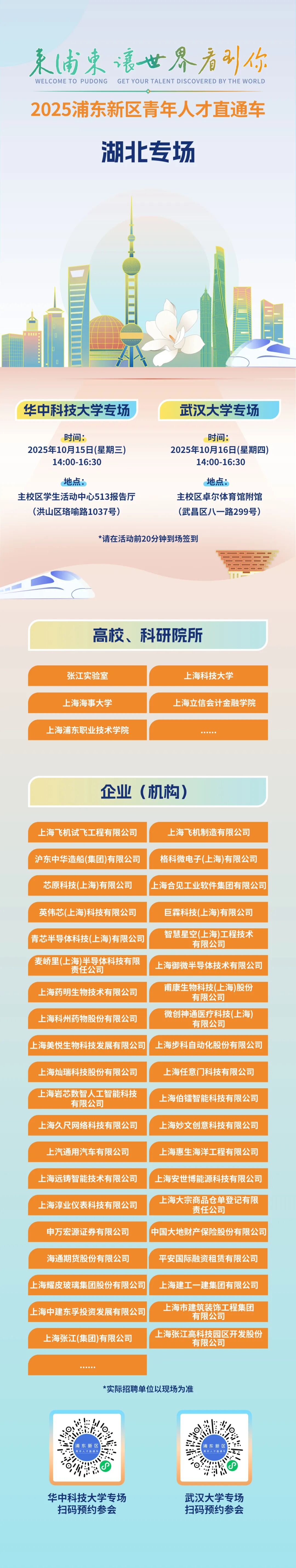 2025浦东新区青年人才直通车——10月15日、16日湖北专场来啦!