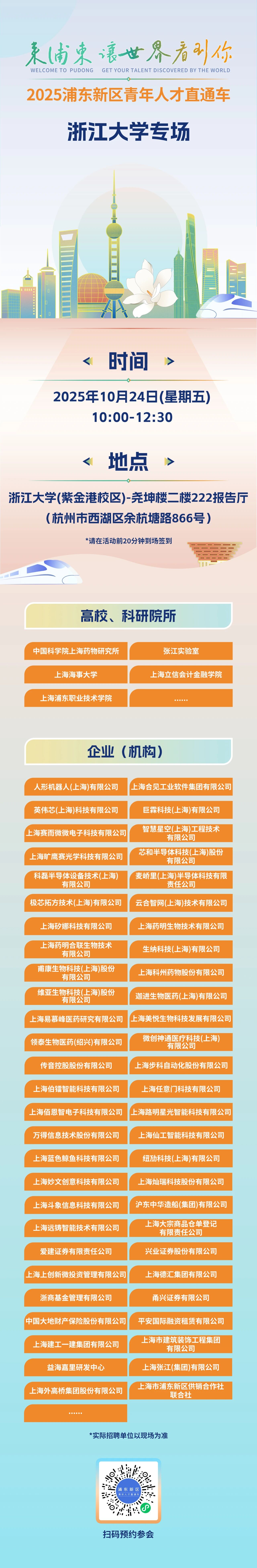 2025浦东新区“青年人才直通车”——10月24日浙江大学专场来啦!
