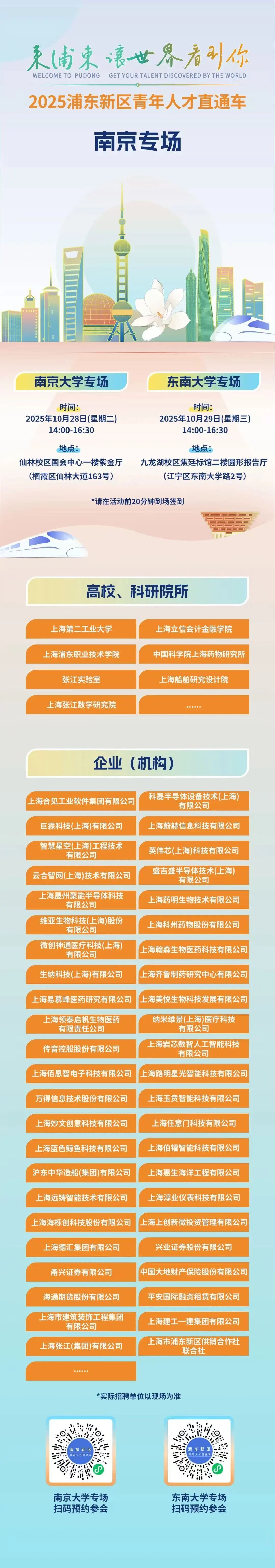 2025浦东新区“青年人才直通车”——10月28日、29日南京专场来啦!