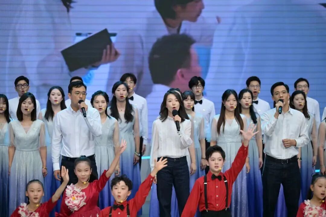 报告会尾声,中国船舶集团有限公司第七〇八研究所高级工程师张统,上海交通大学材料科学与工程学院副教授王言博,中国电子科技集团公司第二十一研究所机械设计师甘文萱,中国科学院上海高等研究院 9¾合唱团,上海小荧星艺术团共同演唱歌曲《科创之城》。该歌曲创作基于上海交通大学、上海音乐学院合作的“多模态脑电特征解码研究”,通过EEG信号分析选取脑电“快乐波段”进行编曲,探索艺术创作从经验导向到神经证据驱动的范式变革,以科技赋能艺术创作。