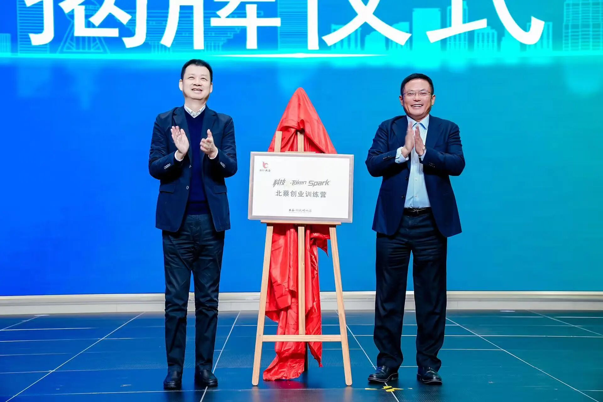 为进一步延伸科创服务链条,北蔡镇党委书记殷宏和全球高校校友科创大赛联席主席兼秘书长吴献斌共同为“科技 X-Token Spark 北蔡创业训练营”揭牌,未来该训练营将通过导师辅导、资源对接、政策扶持等全链条服务,为青年创业者点燃梦想、助力成长。