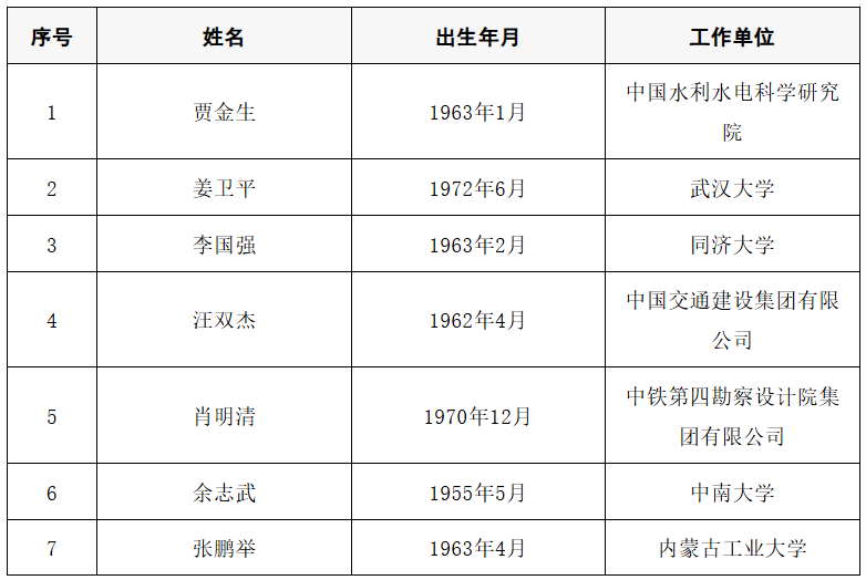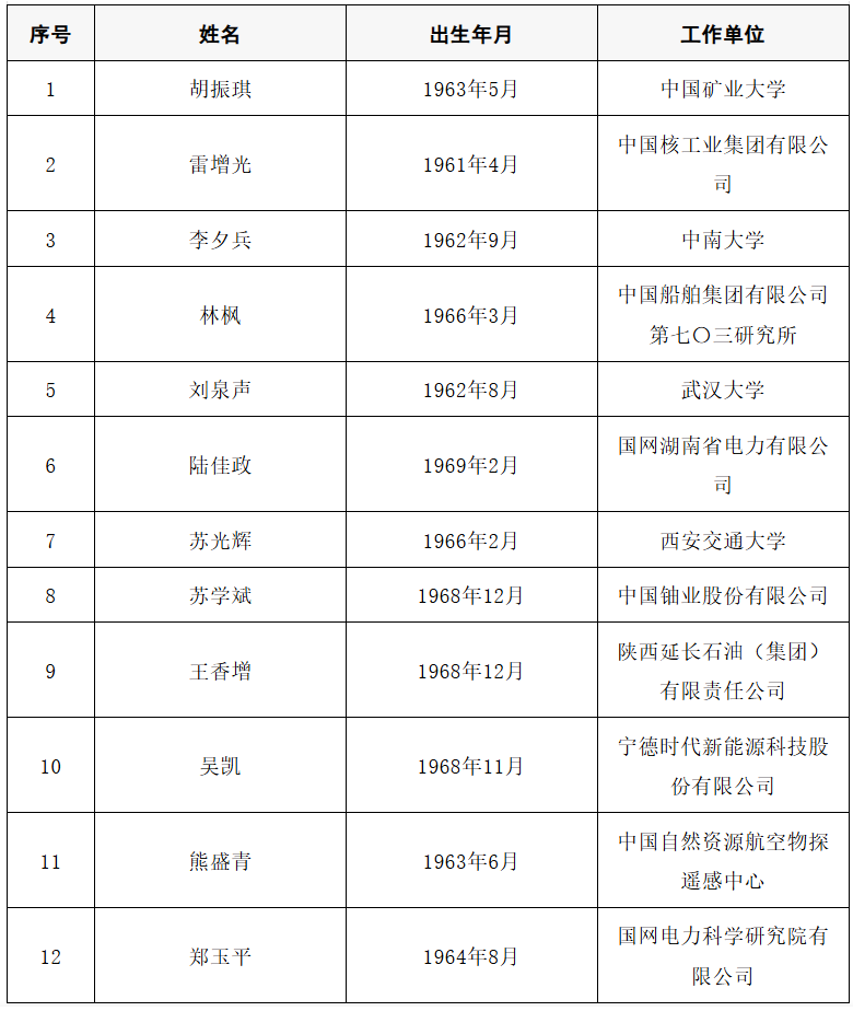 2025年当选中国工程院院士名单