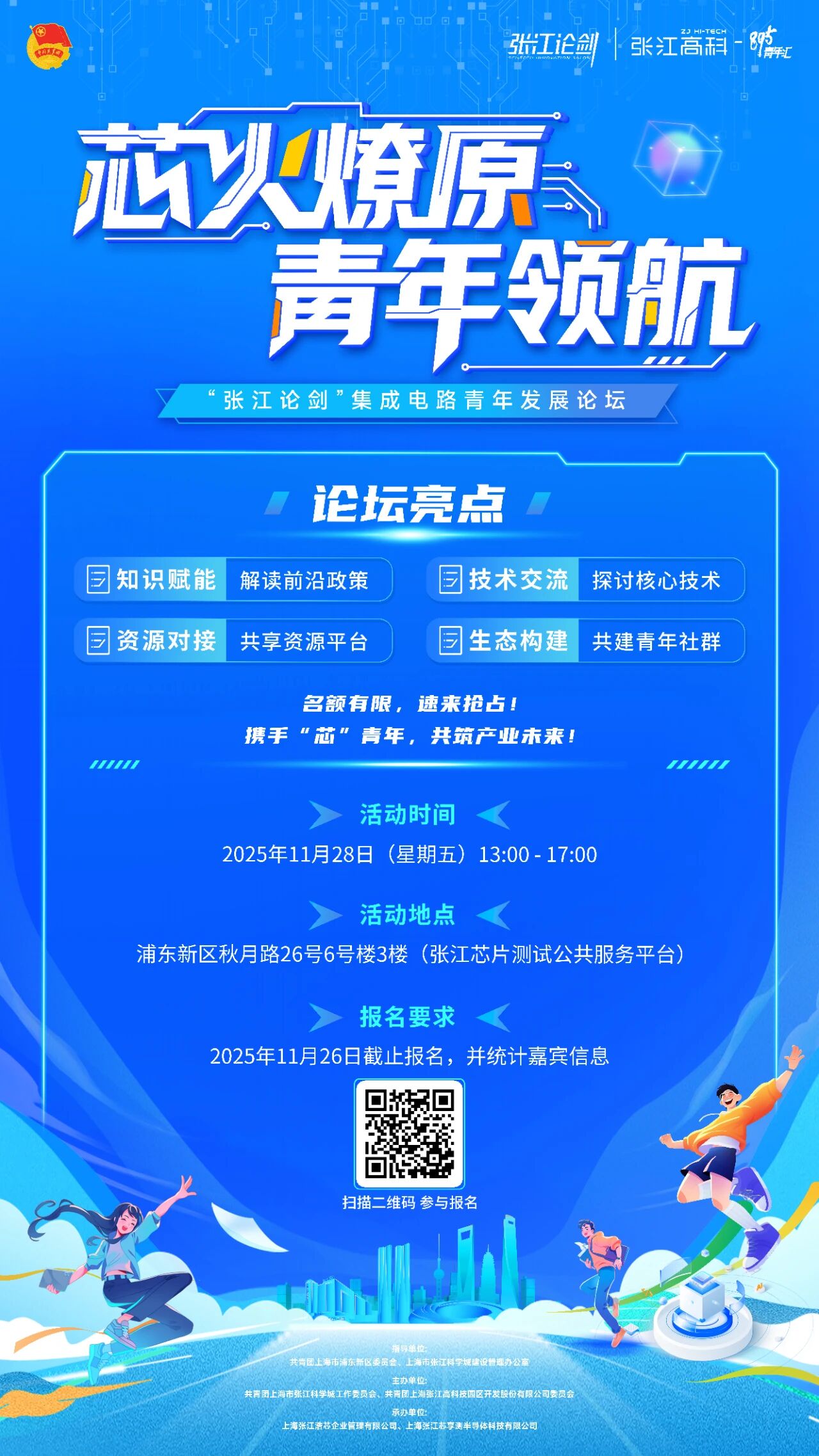 为促进集成电路领域青年人才成长交流,聚力张江科学城集成电路产业生态建设,赋能产业高质量发展,将于2025年11月28日举办“芯火燎原·青年领航——‘张江论剑’集成电路青年发展论坛”,诚邀各相关单位青年骨干、从业人员出席交流,共探行业前沿、共话创新路径、共谋产业未来。