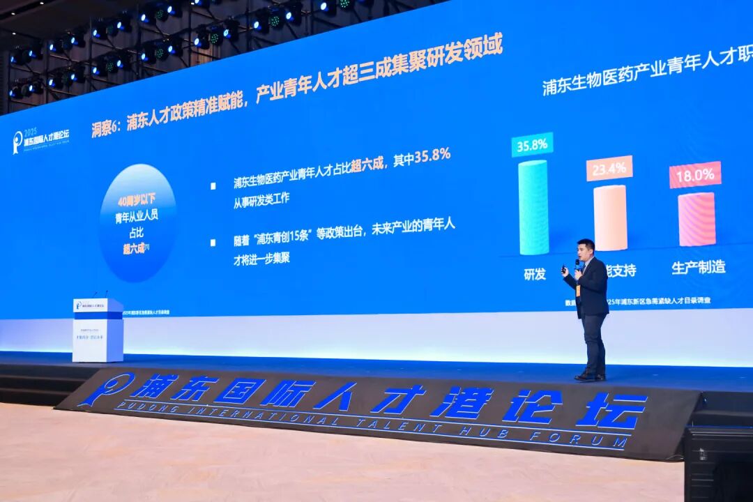 论坛期间,《2025浦东新区生物医药产业人才发展趋势报告》重磅发布。该报告由上海市生物医药科技产业促进中心与上海浦东人才发展有限公司联合编制,从产业宏观数据入手,结合企业调研微观数据,全面呈现了浦东新区生物医药产业人才总量、人才结构、发展趋势及未来需求等11个洞察观点,为产业人才发展提供权威数据支撑。