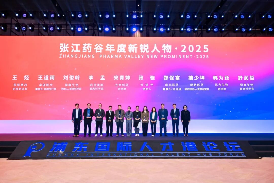 恩凯赛药研发副总裁王烃、卓道医疗董事长兼首席执行官王道雨、循曜生物创始人兼首席科学家刘俊岭、岩思类脑首席科学家李孟、光声制药总经理宋青婷、合锦元创始人张骁、皓元医药董事长兼总经理郑保富、翱路医药联合创始人兼首席运营官揣少坤、民为生物总经理韩为跃、舜喜生物首席科学家官舒润哲荣获“张江药谷年度新锐人物·2025”。