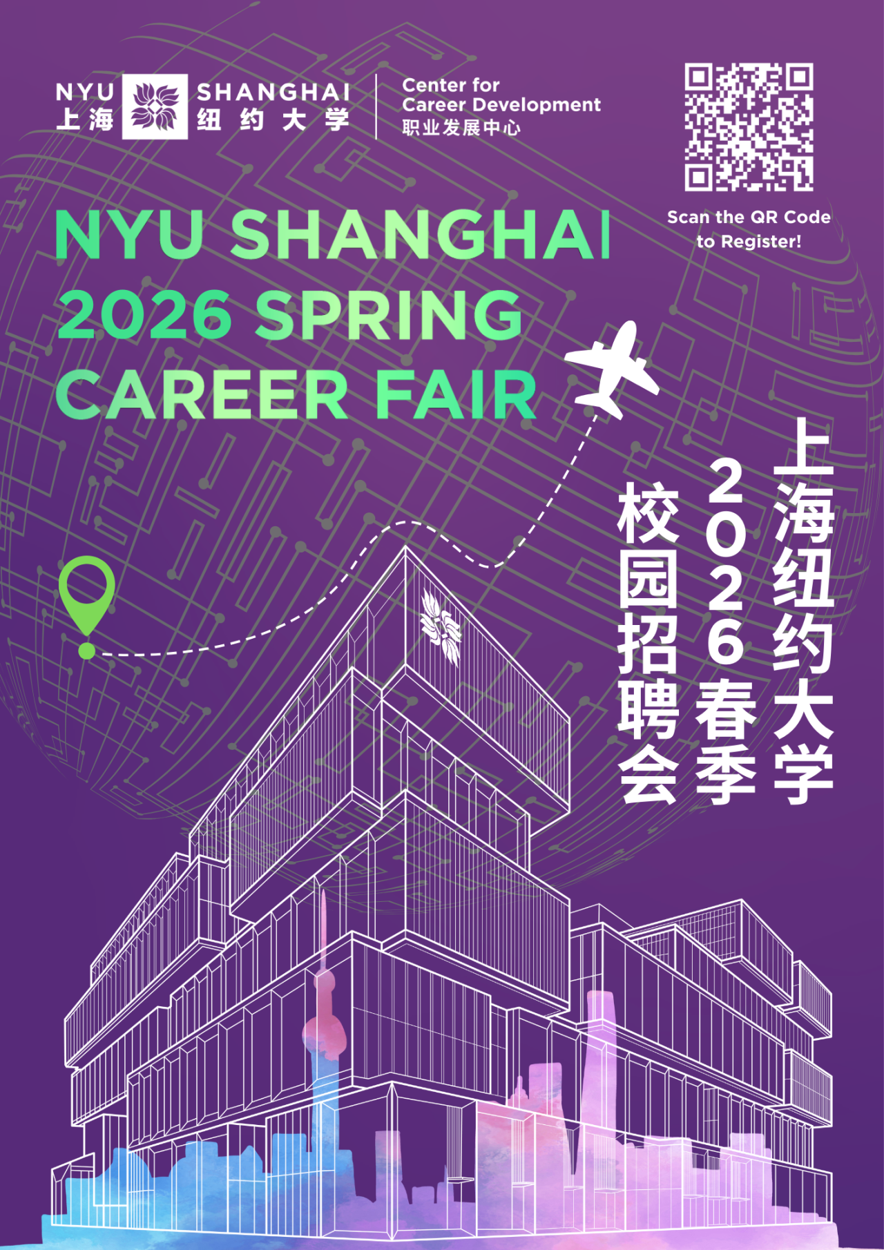 为促进企业与学生之间的持续交流,上海纽约大学职业发展中心诚挚邀请您参加“上海纽约大学2026年春季校园招聘会”。期待春暖花开时,与您在前滩校园见!