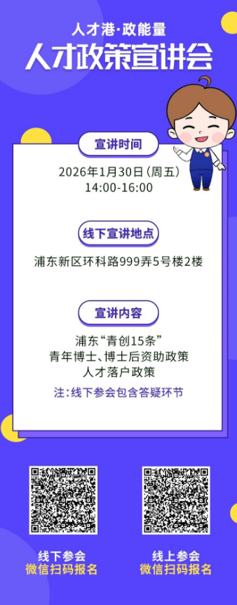 1月30日(周五)“人才港·政能量”人才政策宣讲会报名中